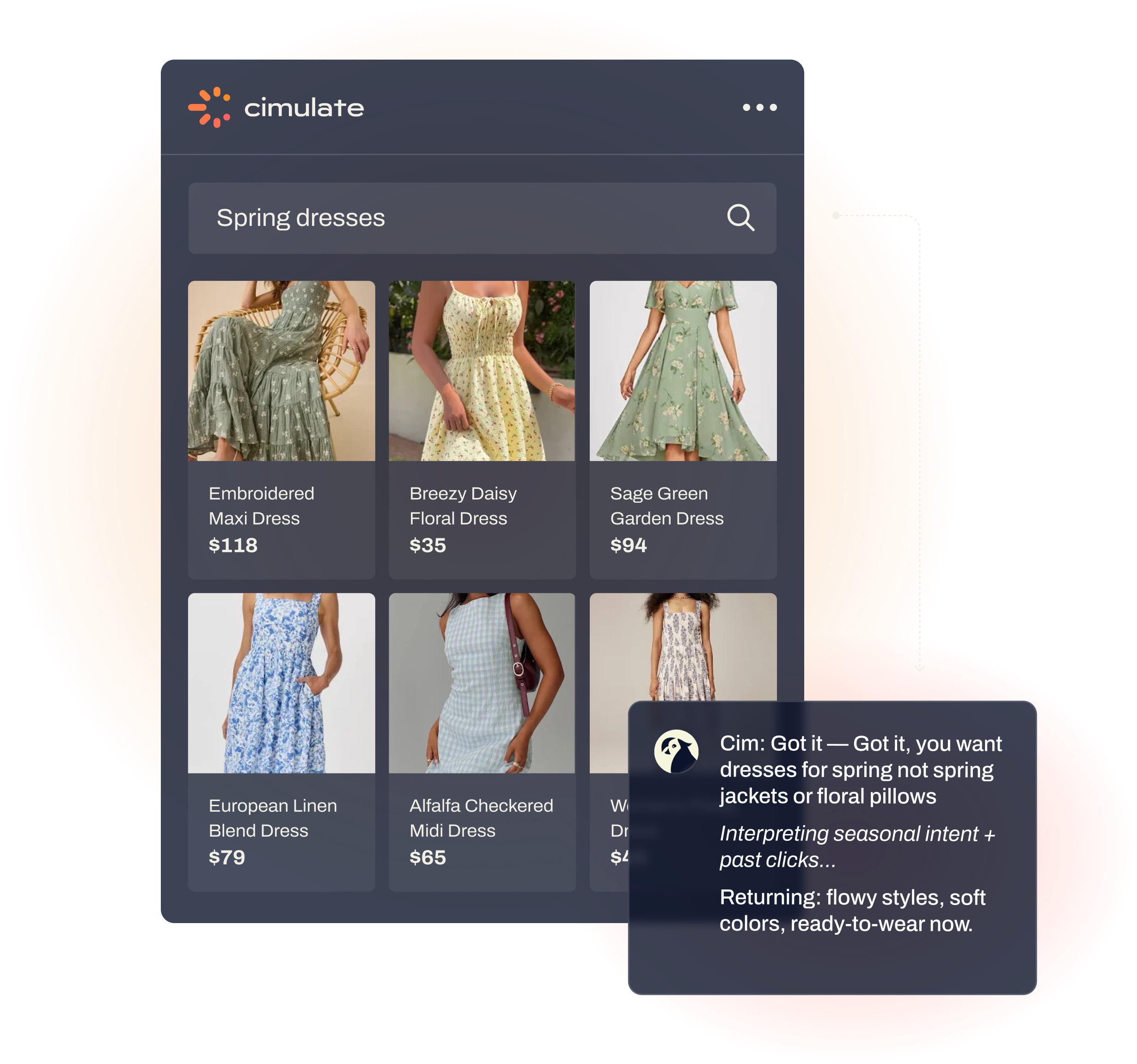 What stood out? Cimulate understood customer intent in a way no other platform could. Whether it was subtle pluralizations like “nike” vs. “nikes,” seasonal queries like “spring dresses,” or long-tail searches packed with descriptors, the AI-native engine delivered relevant, high-converting results—out of the box.